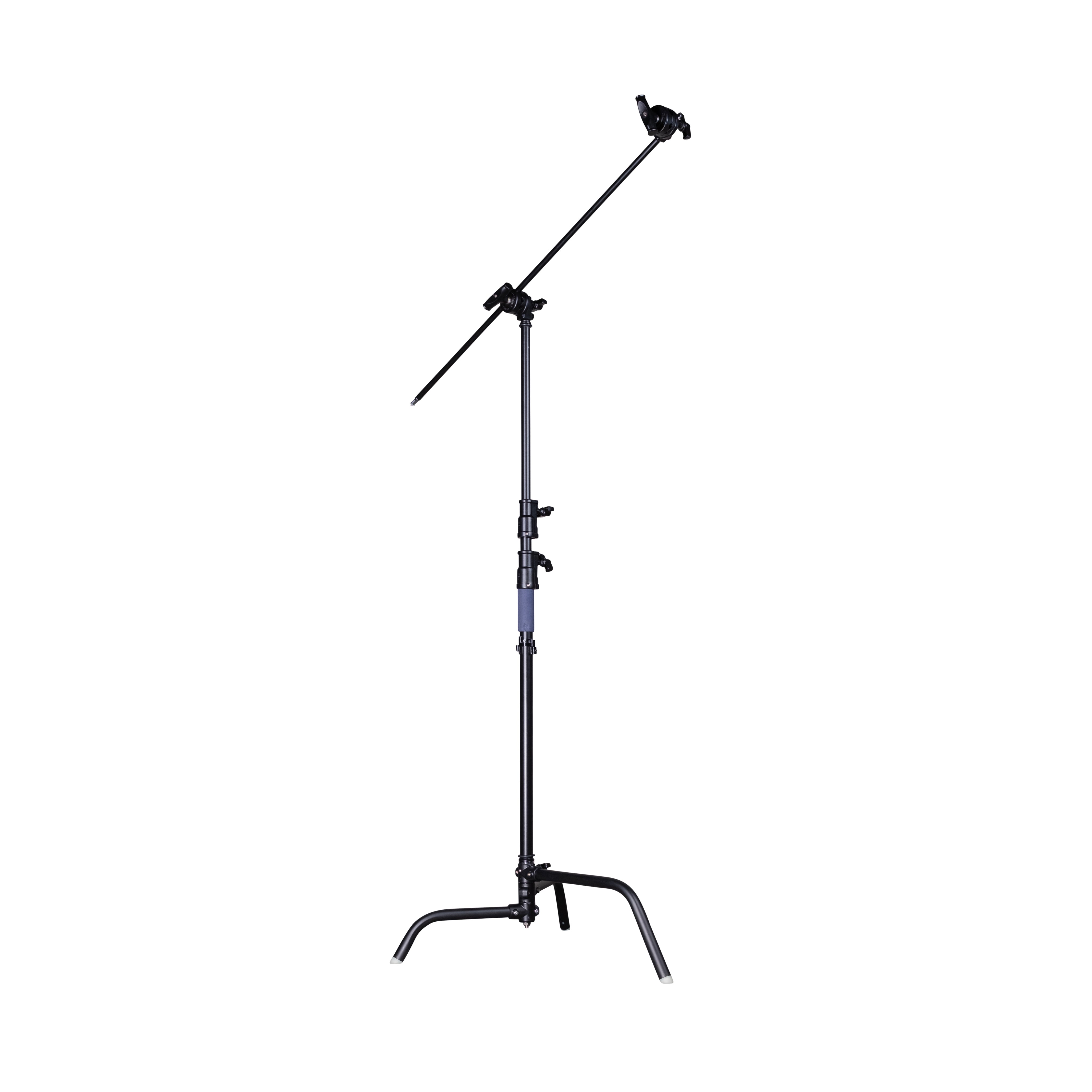 Our C stands come with two grip heads and a boom in case you need to get something overhead! The spigoted ends have flats that are meant to line up with your mounting screw and prevent unwanted twisting.  You'll also find a 1/4" thread on one end of the boom and a 3/8" thread on the other as additional mounting options.