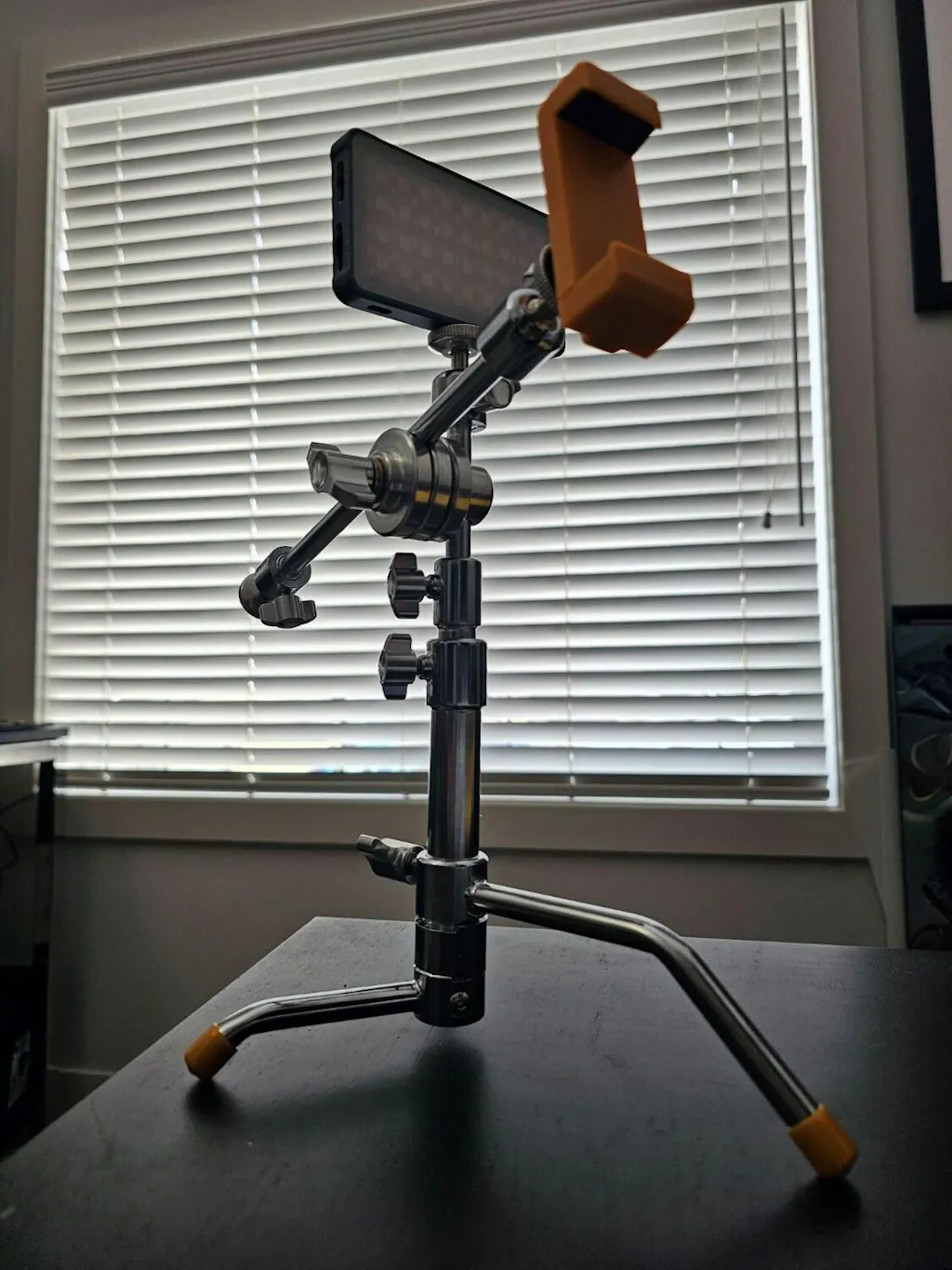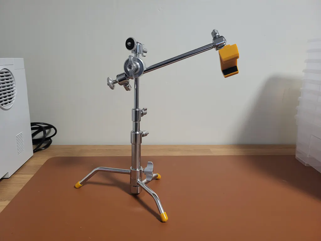 The Strobepro Micro C Stand includes an adjustable boom arm, grip head, 3 pivot ball heads with 1/4 threads and a smartphone clamp. This makes it easy to add your phone, led lights or flashes, and a microphone to its multiple attachment points.